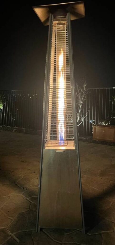 These heaters are tall and narrow, with most of their weight concentrated at the top. A gust of wind or uneven ground can make a tower-style heater unstable. If the base isn’t properly secured or the safety tilt switch fails, the heater can fall, spilling propane and igniting surrounding materials — a known cause of restaurant patio heater fires.